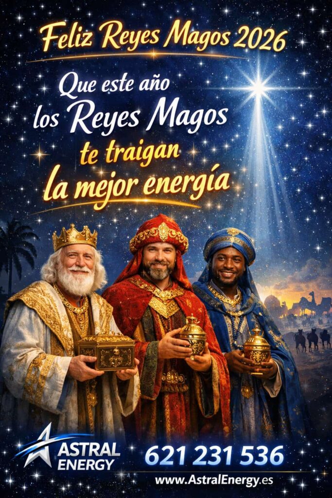 Los Reyes Magos ya están en camino… ⭐Y este año deseamos que te traigan la mejor energía para cumplir todos tus sueños.Desde Astral Energy, iluminamos tu 2026 con energía de calidad. 📞 621 231 536 | 🌐 www.AstralEnergy.es 👉 Solicitar mi estudio gratuito ⚠️ ¿Quieres una rápida revisión? 👉 Test de ahorro
